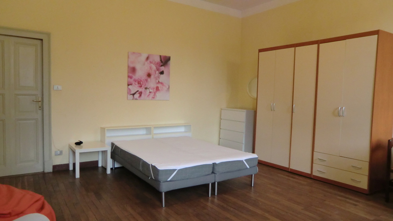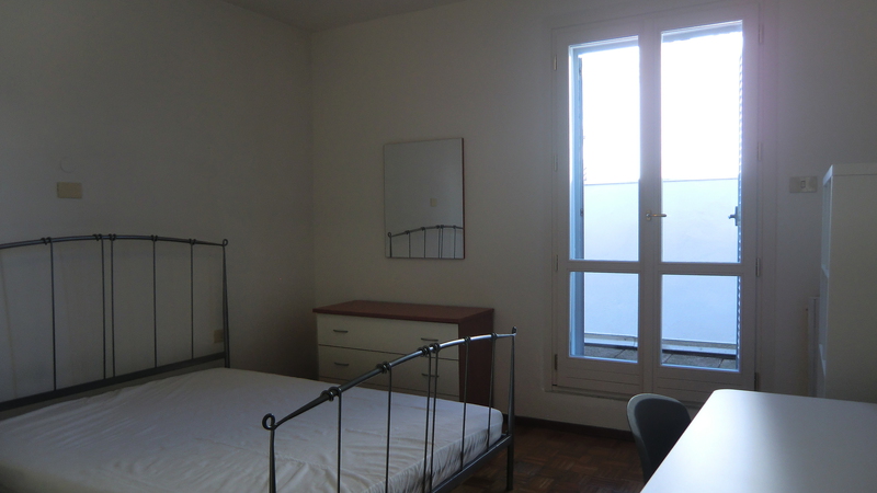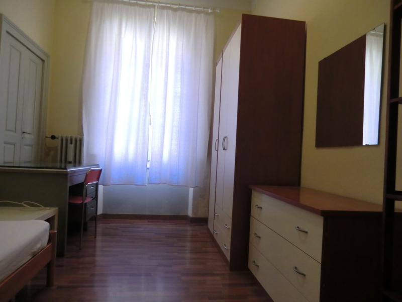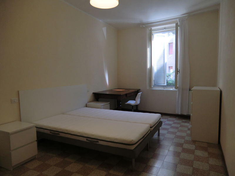 Al 1° piano ampia matrimoniale uso singola, affacciata su di un grande giardino interno e molto tranquilla, in appartamento che comprende: ingresso, 3 stanze uso singole, bagno , cucina abitabile .Appartamento dotato di lavatrice,lavastoviglie, riscaldamento autonomo e deposito bici